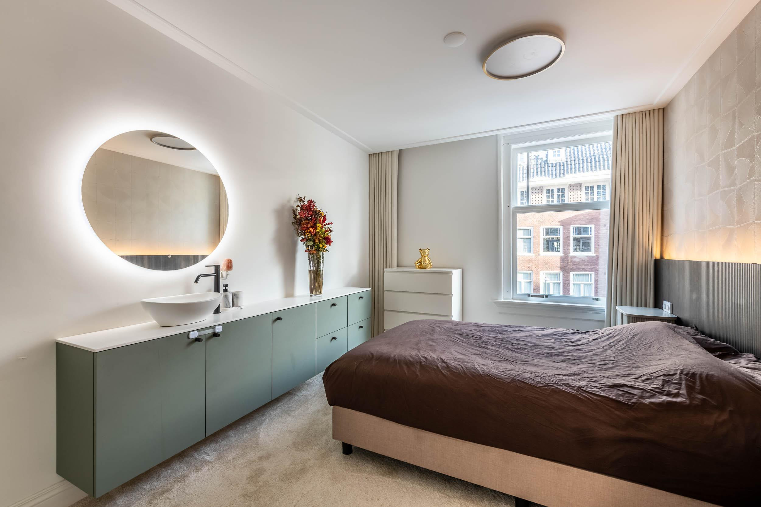 This spacious apartment of approximately 118 m² is located in the Apollobuurt neighborhood. A home that still retains the charm of the 1930s combined with the luxury of 2026. The apartment features two bedrooms, each with an en-suite bathroom, a spacious study/walk-in closet, and a south-facing balcony.