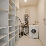 The kitchen was renovated in 2019 and has a U-shaped countertop with upper and lower cabinets, 1½ sink, a four-burner induction hob with an extractor hood above, an oven and a dishwasher. Next to the sink is a tall cabinet with a refrigerator and separate freezer. In the spacious utility room next to the kitchen there is a (small and new) district heating system and a washing machine. There is also plenty of storage space. The separate toilet contains a toilet and a sink. The bathroom has a bath, a separate shower and a wide sink with a piece of furniture underneath and next to it.